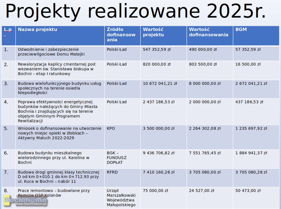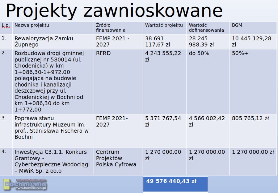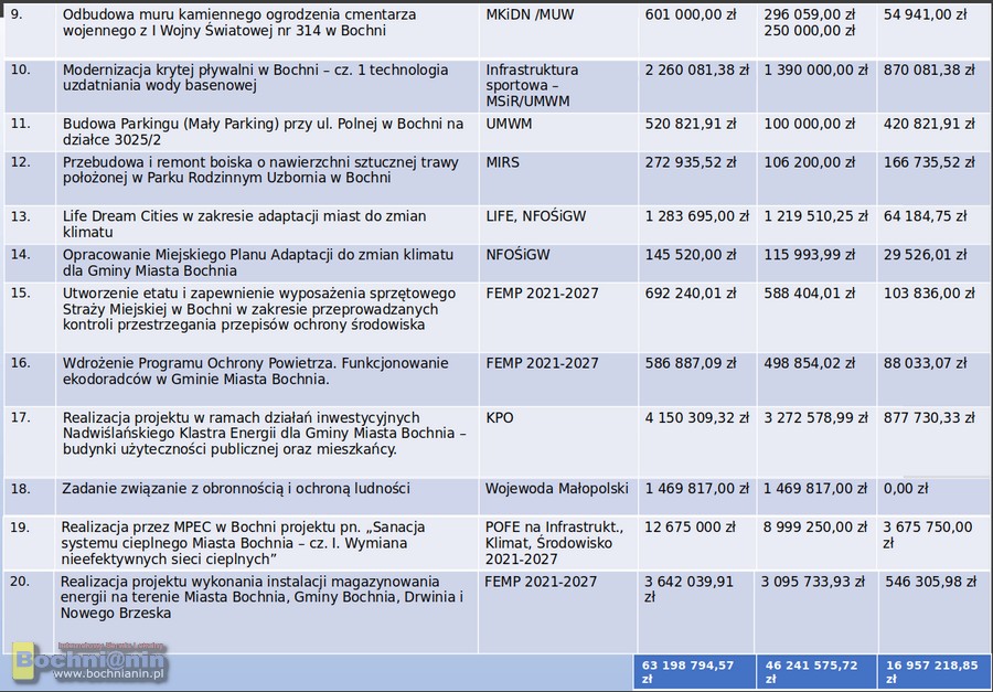 źródło: Urząd Miasta BochniaZakres projektów i wątpliwości radnych