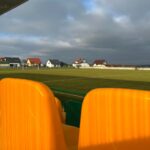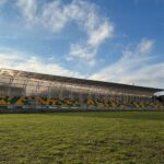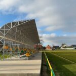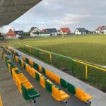 Nowe trybuny na stadionie w Pierzchnicy / Fot. Marcin Marszałek – Radio KielceBurmistrz dodaje, iż władze gminy prowadzą rozmowy z zarządem klubu w sprawie modernizacji płyty boiska obejmującej wymianę murawy oraz montaż oświetlenia, które umożliwi prowadzenie zajęć na także jesienią i zimą.