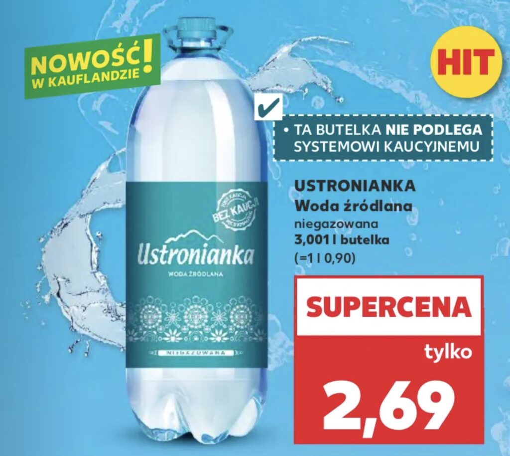 Ale nie wszyscy chcą powiększać ceny napojów. W najnowszej ofercie sieć sklepów Kaufland reklamuje wodę Ustronianka w plastikowej butelce o pojemności… 3,001, a więc takiej, której nie obejmuje system kaucyjny. Sprzedawca nie musi więc nic doliczać do ceny, a klient zwracać butelki, by odzyskać kaucję.