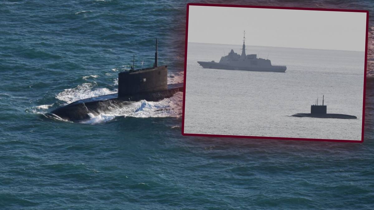 Rosyjski okręt podwodny sfotografowany przez marynarki Francji i Holandii