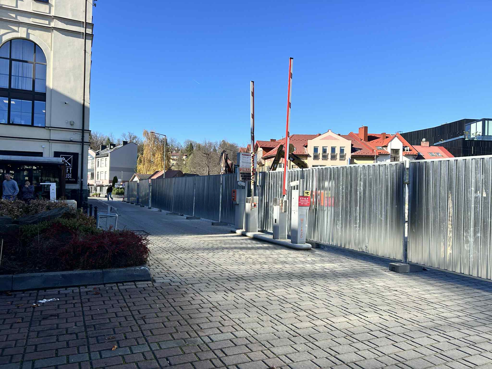 Na razie został wyburzony budynek, w którym mieścił się sklep spożywczy. Teren ten został oddzielony metalowym ogrodzeniem, za którym można było jeszcze dzisiaj zauważyć odpady pobudowlane i gruz z rozbiórki obiektu handlowego. Później rozpoczną się prace związane z budową sieci kanalizacyjnej, elektrycznej, gazowej i odwodnieniem, aby przygotować teren pod planowaną inwestycję.