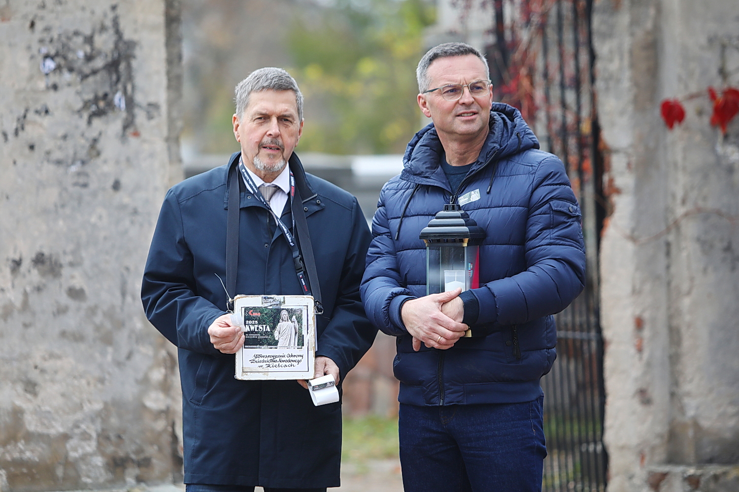 01.11.2025. Kielce. Cmentarz Stary. Kwesta / Fot. Wiktor Taszłow – Radio KielceRadny Jarosław Karyś przypomina, iż wiele zabytkowych nagrobków wymaga pilnej renowacji, co jest kosztowne, dlatego warto zaangażować się w zbiórkę wrzucając datek.