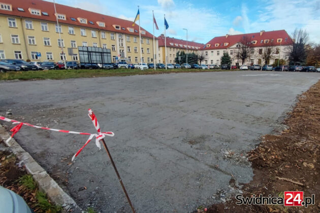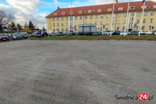 20 października 2025 roku powiatowi samorządowcy poinformowali o zamiarze utworzenia tymczasowego parkingu mieszczącego około 30 samochodów na części zieleńca przed siedzibą Starostwa Powiatowego. – Pod koniec ubiegłego tygodnia rozpoczęliśmy prace, które mają się już ku końcowi. Zdjęta została warstwa humusu, wysypano tam warstwę kruszywa i zagęszczono płytę parkingu. Jeszcze dzisiaj postaramy się ustawić znaki drogowe, żeby wskazać kierującym jak wjechać i jak mają się ustawiać samochody na tym tymczasowym parkingu. Będzie tam można parkować po lewej i po prawej stronie od wjazdu, również po skosie – tak, jak ma to miejsce na parkingu wokół tego zieleńca. o ile nic nie stanie na przeszkodzie to od jutra ten parking zostanie udostępniony – informuje Marek Olesiński, dyrektor Służby Drogowej Powiatu Świdnickiego.