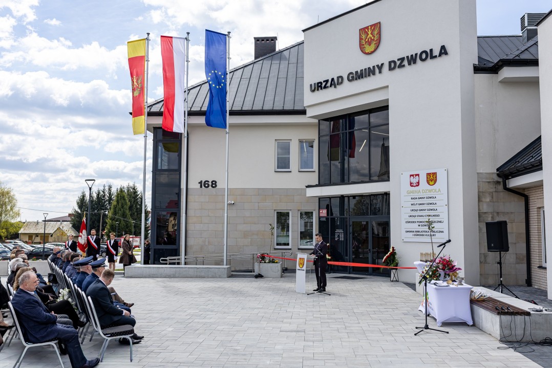 W dniu 23 kwietnia odbyło się uroczyste otwarcie nowej siedziby Urzędu Gminy Dzwola – inwestycji istotnej dla funkcjonowania samorządu oraz jakości obsługi mieszkańców. Nowoczesny obiekt został zaprojektowany jako przestrzeń funkcjonalna i dostępna dla wszystkich użytkowników, w tym osób z niepełnosprawnościami, zapewniając komfortowe warunki zarówno dla interesantów, jak i pracowników urzędu.