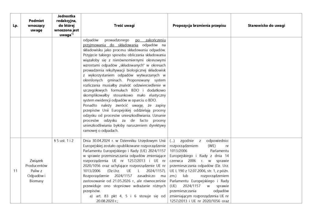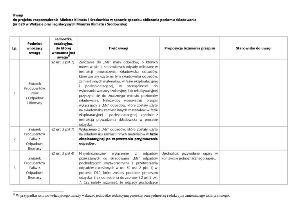 Ministerstwo Klimatu i Środowiska opublikowało projekt rozporządzenia w sprawie sposobu obliczania poziomu składowania (nr 820 w Wykazie prac legislacyjnych). ZPPOB wysłało swoje uwagi do ww. projektu. Całkiem sporo spostrzeżeń zebraliśmy wśród naszych członków. Dziękujemy za współpracę!