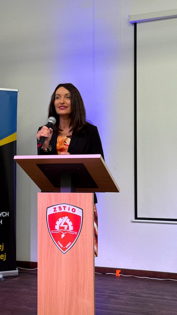Wspólnie z Dyrektorem szkoły, Panem Marcinem Ślęzakiem, konferencję otworzyła Wicestarosta Tarnogórski – Pani Anna Kubica.