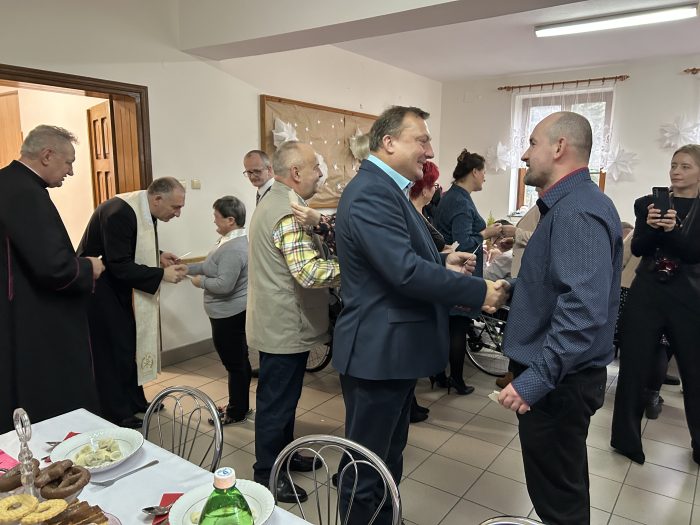 Po życzeniach przyszedł czas na poczęstunek, wspólne kolędowanie oraz Jasełka w wykonaniu uczestników ŚDS, które wprowadziły wszystkich w wyjątkowy, świąteczny nastrój.