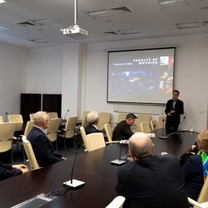 Podczas spotkania prof. Krzysztof Turzyński zaprezentował ofertę edukacyjną Wydziału Fizyki UW, omówił dotychczasowe działania NCC, a także współpracę prowadzoną z analogicznymi jednostkami działającymi na Politechnice w Brnie (BUT) oraz Politechnice Czeskiej w Pradze (CTU).