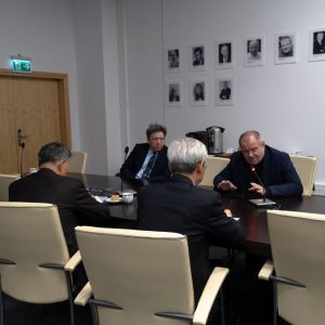 25 listopada na Wydziale Fizyki UW odbyło się spotkanie z delegacją Ambasady Republiki Korei w Polsce. Wzięli w nim udział m.in. prof. Alojzy Z. Nowak, rektor UW, oraz przedstawiciele władz wydziałów i jednostek uczelni. Rozmowy dotyczyły dalszej współpracy dydaktycznej i naukowej w ramach Nuclear Collaboration Center – centrum szkoleniowego energetyki jądrowej działającego na Wydziale Fizyki.