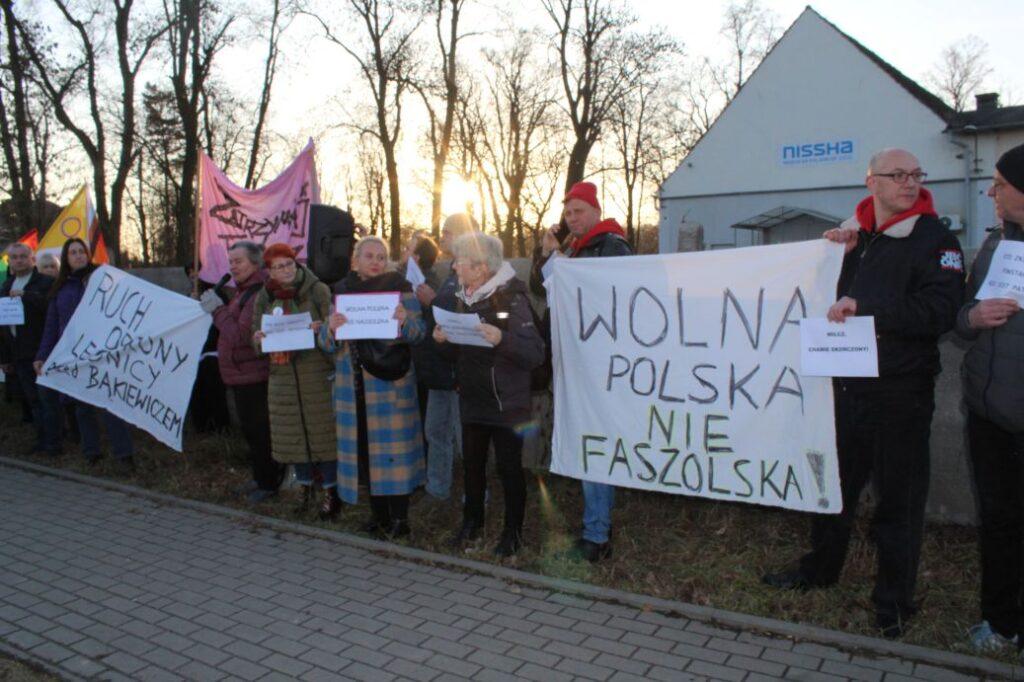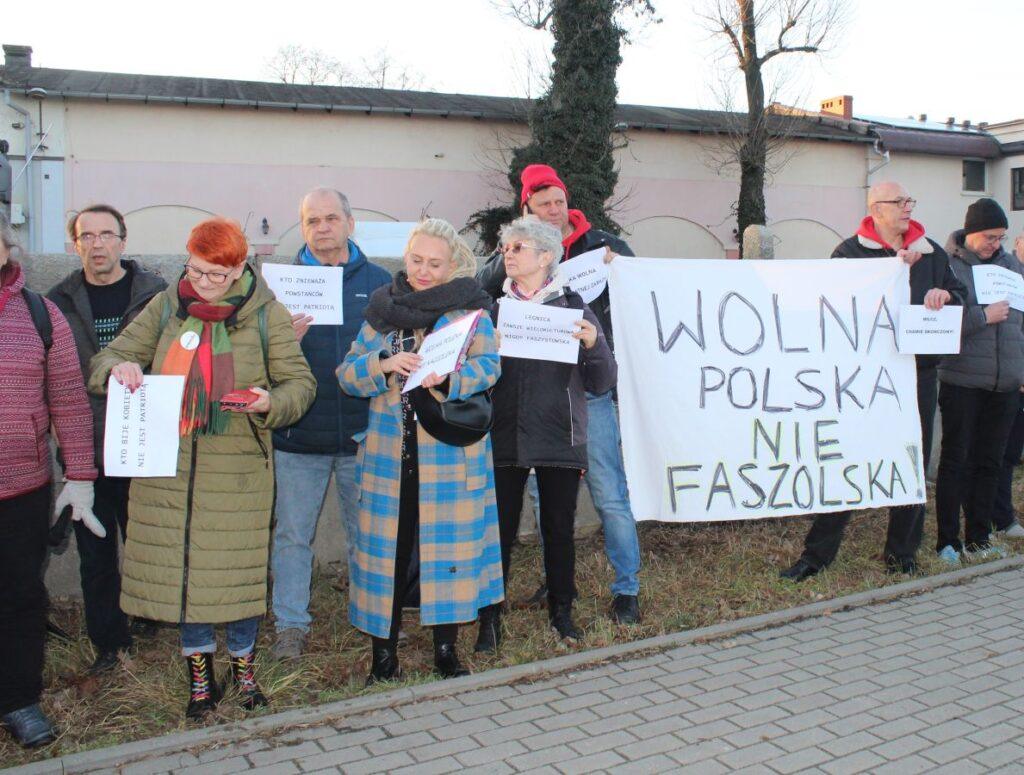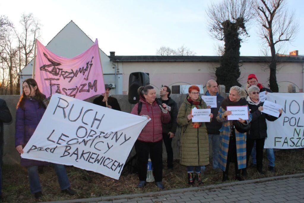 „Wolna Polska, nie faszolska”, „Ruch obrony Legnicy przed Bąkiewiczem”, „Zatrzymaj faszyzm” – transparenty przeciwników wizyty Robert Bąkiewicz w Legnicy witały jego zwolenników przed spotkaniem. Ponad 50 przeciwników pojawiło się przed rozpoczęciem wydarzenia. Ostrych słów padło wiele.