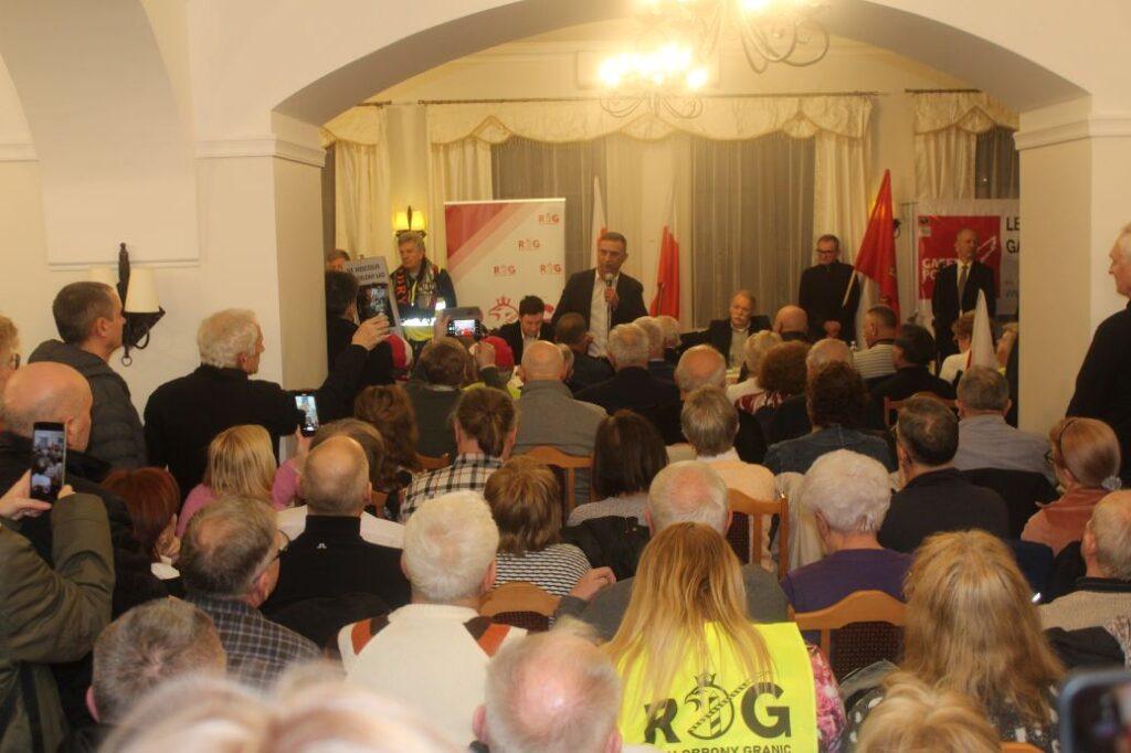Hasła „Jesteśmy Polakami, nie faszystami” kontra „Rota” odśpiewana na początku spotkania – tak wyglądała podzielona Legnica podczas wizyty Roberta Bąkiewicza.