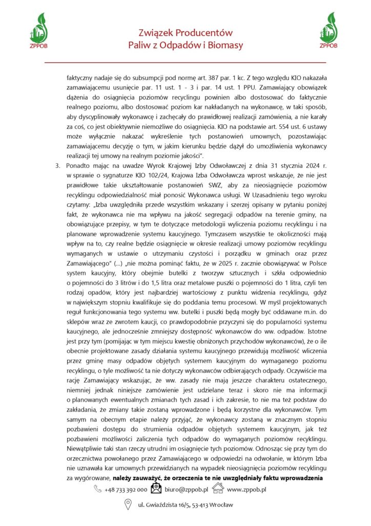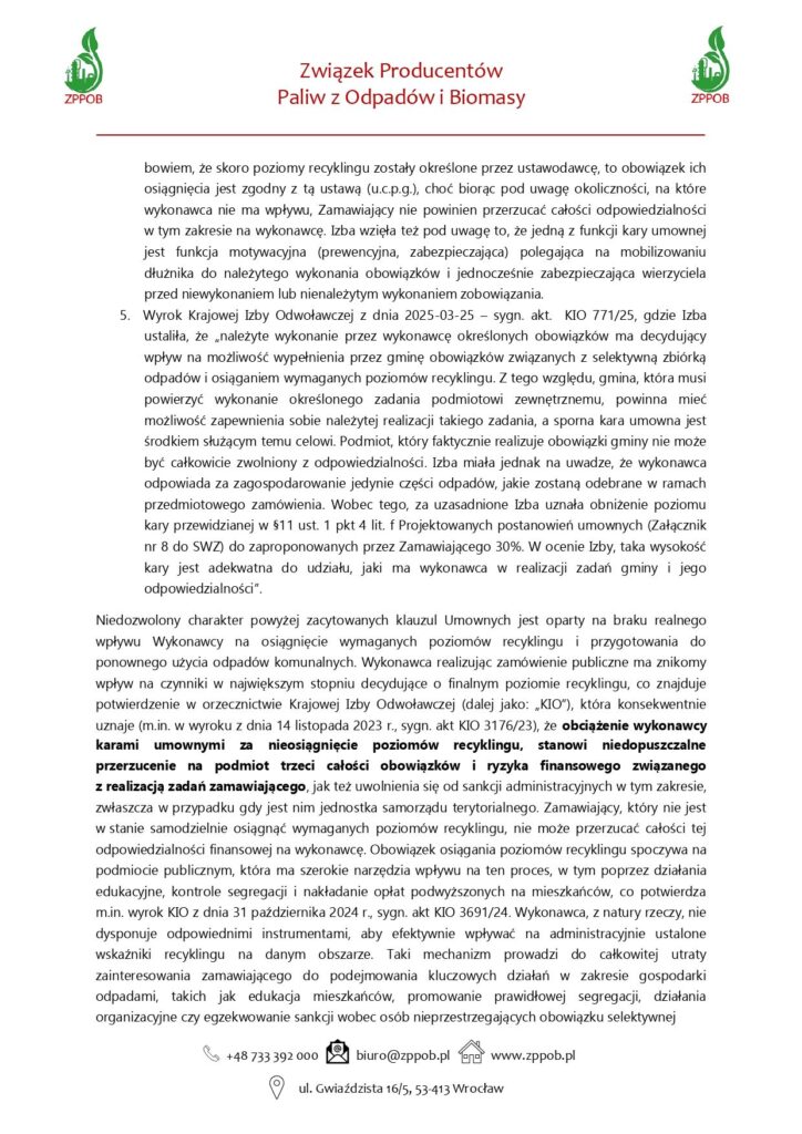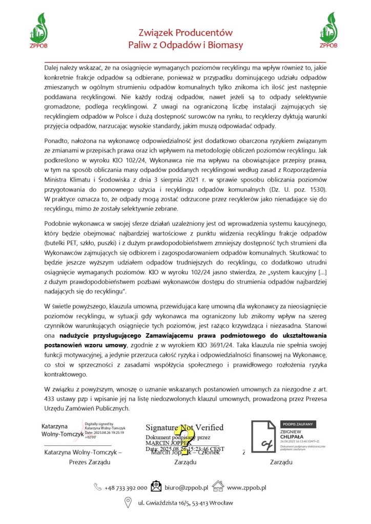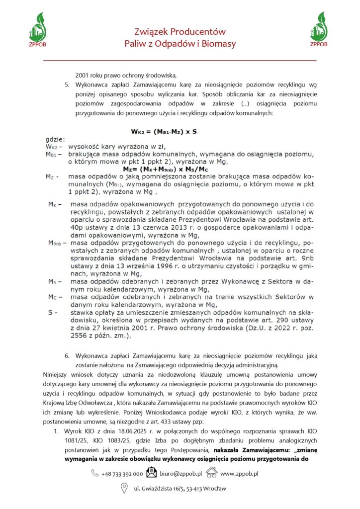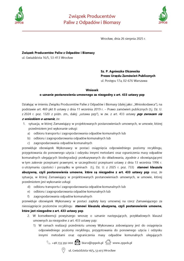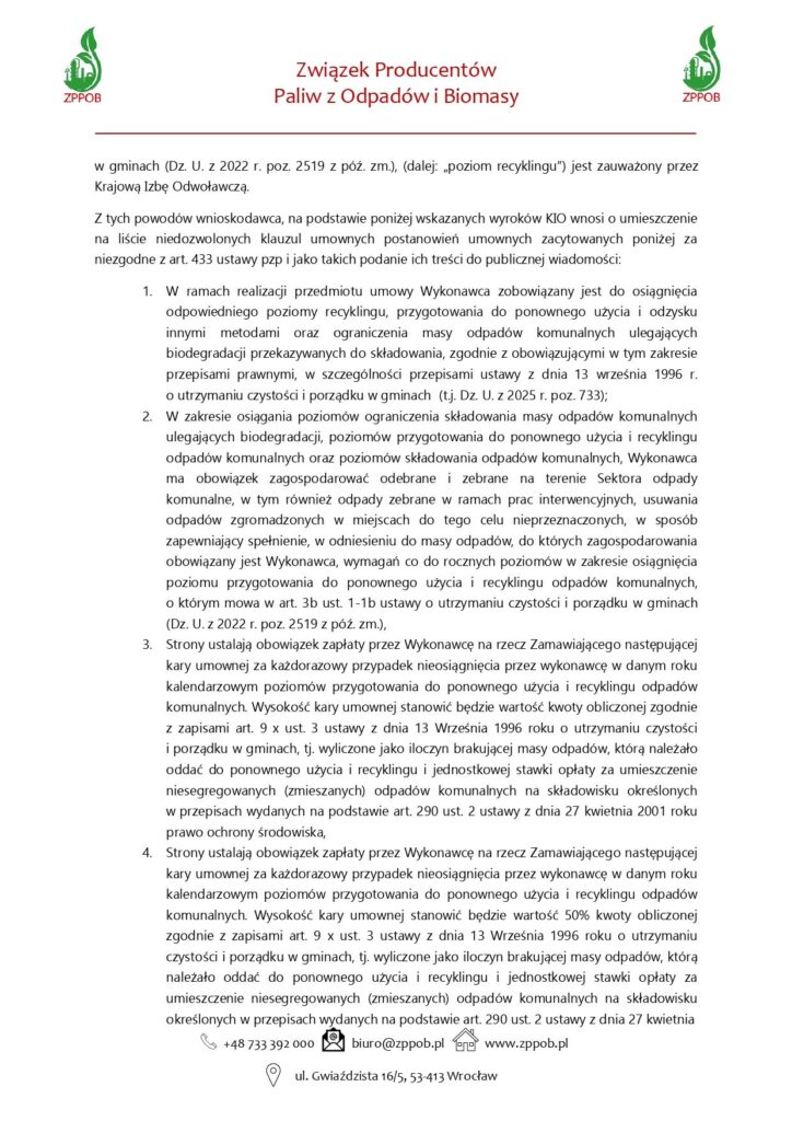 Wystąpiliśmy do Prezesa Urzędu Zamówień Publicznych z wnioskiem o wpisanie niektórych postanowień umownych na listę klauzul sprzecznych z art. 433 PZP.