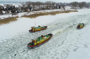 Wody Polskie rozpoczęły akcję lodołamania 5 lutego na dolnej Wiśle. – Celem akcji jest przygotowanie frontu robót do lodołamania przy trwałej odwilży i spływie lodu z południa kraju – informują Wody Polskie.