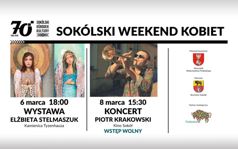 Sokólski Ośrodek Kultury zaprasza na Sokólski Weekend Kobiet w dniach 6-8 marca 2026 roku.