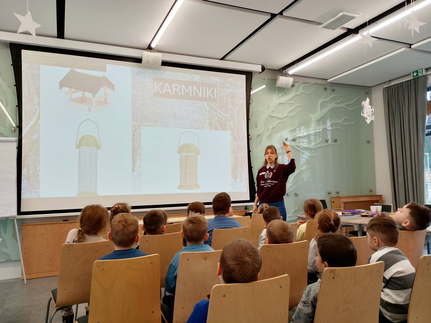 Ekosynteza organizuje zarówno warsztaty stacjonarne, jak i terenowe. Te ostatnie prowadzone są w dużym ogrodzie znajdującym się przy obiekcie, a także w pobliskim Cygańskim Lesie. – Prowadzimy warsztaty z bardzo szerokiego zakresu tematycznego – opowiada Agata Niklewicz. – Są to na przykład warsztaty ornitologiczne, podczas których uczestnicy dowiadują się, jak pomagać ptakom zimą i budują karmniki. Mamy też lornetki i lunety, które wykorzystujemy do obserwacji ptaków. Oferujemy też zajęcia dotyczące rozpoznawania drzew i krzewów, podczas których dzieci robią zielniki. Są też warsztaty na temat owadów oraz grzybów. Dla starszych uczniów mamy z kolei warsztaty dotyczące klimatu i wpływu zmian klimatu na różnorodność biologiczną.