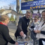 01.11.2025. Sandomierz. Cmentarz Katedralny. Wszystkich Świętych. Kwesta / Fot. Grażyna Szlęzak-Wójcik – Radio KielceWśród kwestujących był m.in Waldemar Białousz, wiceprzewodniczący Rady Miasta Sandomierza. Jak powiedział, pamięć o przeszłości jest bardzo istotnym elementem w budowaniu przyszłości.