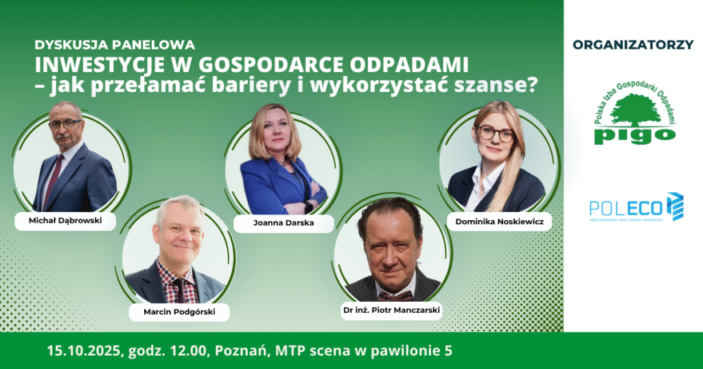 Po wydarzeniu na stronie PIGO opublikowana zostanie relacja z panelu, zawierająca najważniejsze wnioski i rekomendacje ekspertów dotyczące przyspieszenia procesów inwestycyjnych w gospodarce odpadami.